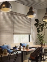 プリーツスクリーン・・・窓辺をすっきりと装います。シングルタイプとレース生地と組み合わせたツインタイプがあります。