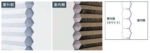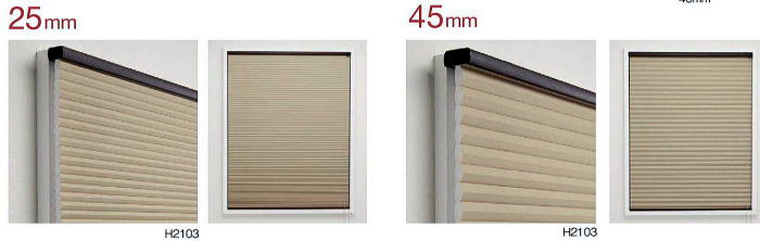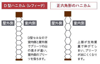 レフィーナ25・45ともにハニカム断面がD型のセルを採用。生地重量がかかっても形状の変化が少なく、室内のプリーツラインを保ちます。 |