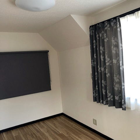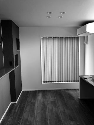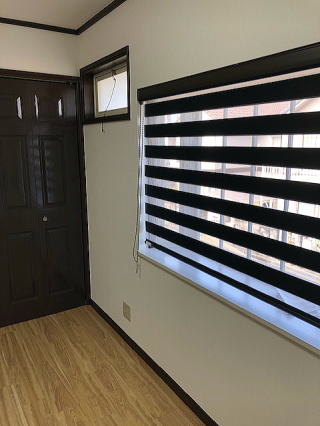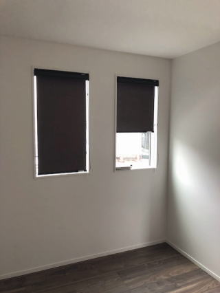 モノトーンの好きなお客様で洋室には濃いグレーのロールスクリーンを選びました。