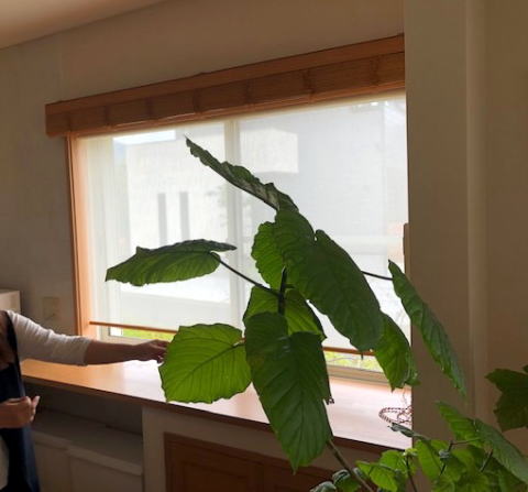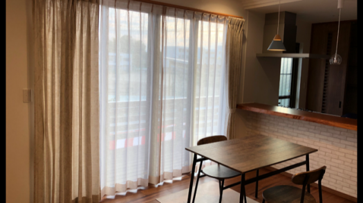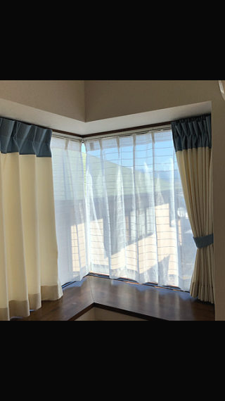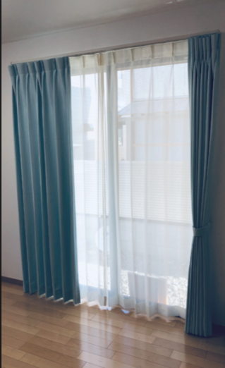 カーテンの色は、実際は爽やかなブルーですが濃く撮れてしまいました。