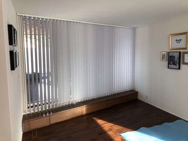 リビングの大きな窓・・・ タテ型ブラインドでスッキリと仕上げました。